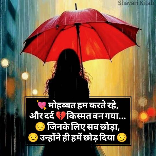 प्यार में दिल टूटने वाली शायरी में कभी शिकायत होती है, तो कभी खामोशियाँ Dil Tutne Wali Sad Shayari में न सिर्फ दर्द होता है, बल्कि एक गहराई भी होती है जो दिल को छू जाती है। यही वजह है कि दिल टूटने पर लोग शायरी में खुद को ढूंढते हैं। ये न सिर्फ दर्द को कम करती हैं, बल्कि हमें खुद को समझने और संभालने का भी रास्ता देती हैं। अगर आपका भी प्यार मोहब्बत में दिल टूटा है तो इस शायरी को अपने व्हाट्सप्प स्टेटस पर जरूर लगाए।
