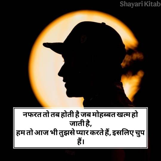इस तरह की नफरत शायरी एक टूटी हुई आत्मा की गहराई को बयां करती हैं। सोशल मीडिया के दौर में नफ़रत शायरी तेजी से लोकप्रिय हो रही है, क्योंकि यह युवा पीढ़ी की असली भावनाओं को उजागर करती है वह भावनाएँ जो अक्सर चेहरे पर नहीं आतीं, पर दिल में रहती हैं। अगर आपको भी किसी से नफरत होने लगी है तो आप भी इस नफरत शायरी को अपने व्हाट्सएप स्टेटस पर जरूर लगाए।