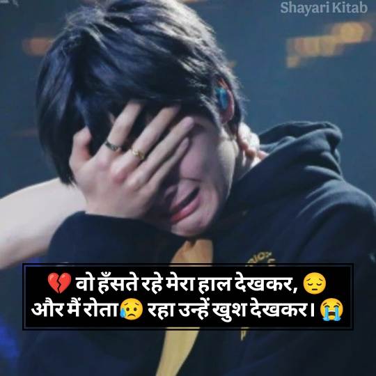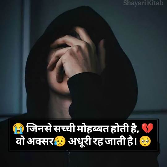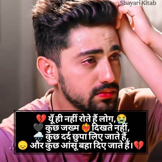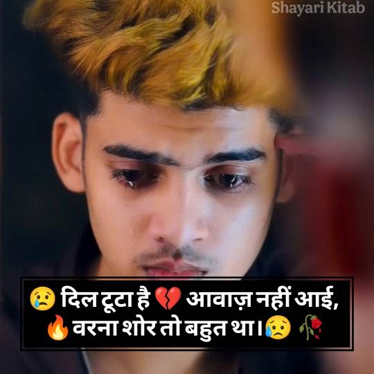Sad Shayari In Hindi 😞 दिल के उन जज़्बातों की अभिव्यक्ति है, जो शब्दों में कहना मुश्किल होता है। जब दिल टूटता है, जब कोई अपना पराया हो जाता है, तब सैड शायरी हिंदी में एक सहारा बन जाती है। यह सिर्फ कुछ अल्फ़ाज़ नहीं, बल्कि जज़्बातों की गहराइयों से निकली हुई आह होती है। Best Alone Sad Shayari In Hindi अक्सर अकेलेपन, मोहब्बत में मिले धोखे, या बिछड़ने के ग़म को बयान करती है।